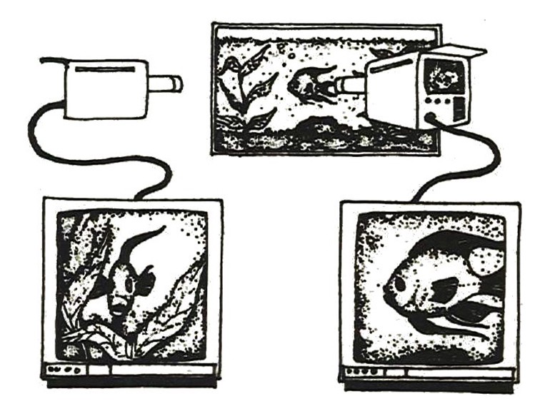 Now you also imagine deeper. You come from a culture that’s never seen aquariums, never seen fish, never seen monitors or cameras. All you see are the two images on both screens.